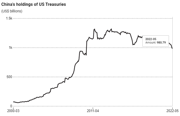 China has aggressively reduced its US treasury securities by 9.3% since November 2021, from USD1080.8 billion to USD980.8 billion in May 2022. US government debt now accounts for around 31% of China’s USD3.07 trillion of foreign exchange reserves, the lowest account since the global financial crisis of 2008.