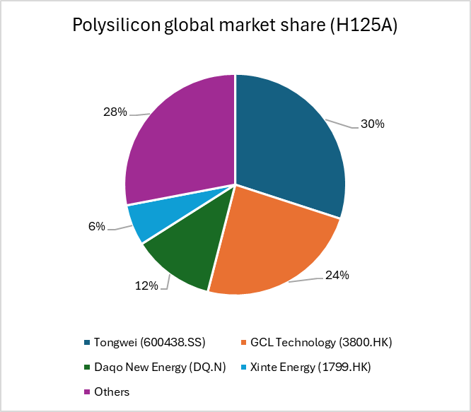 China’s polysilicon consolidates around low-cost leaders, with the top five holding over 80% of output.